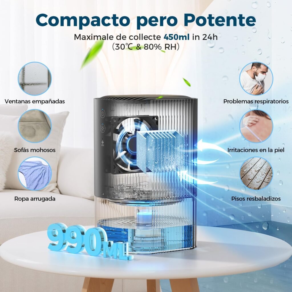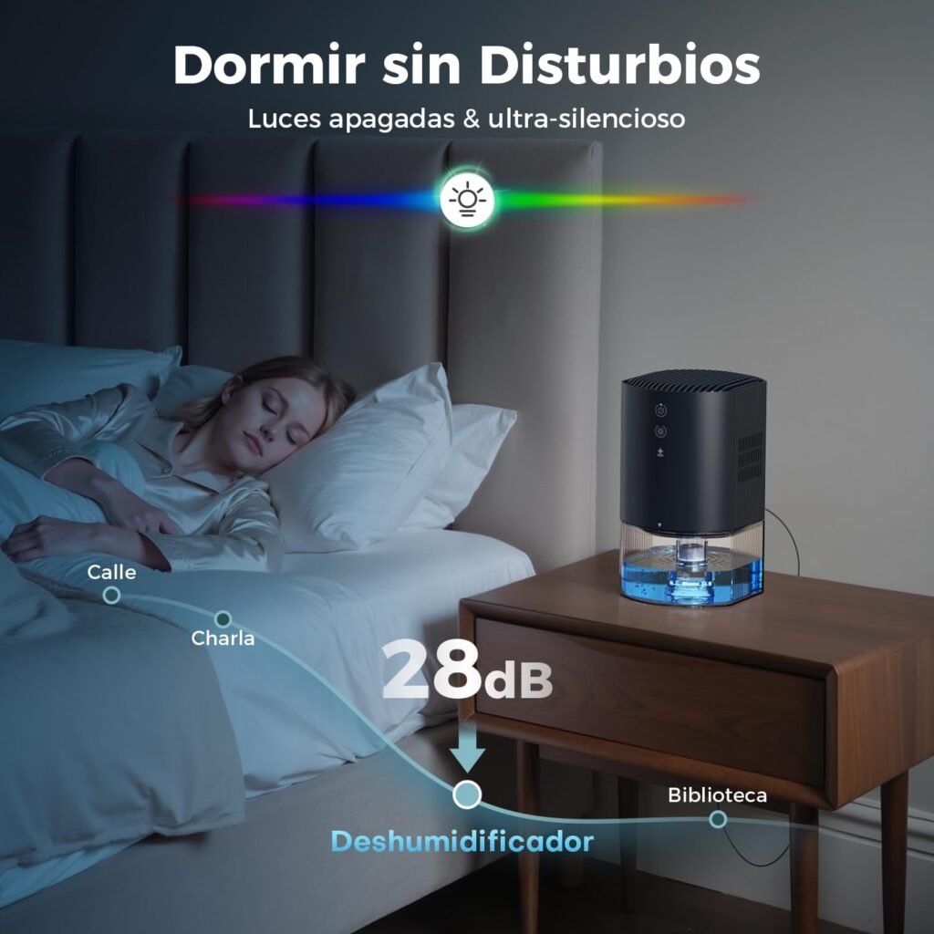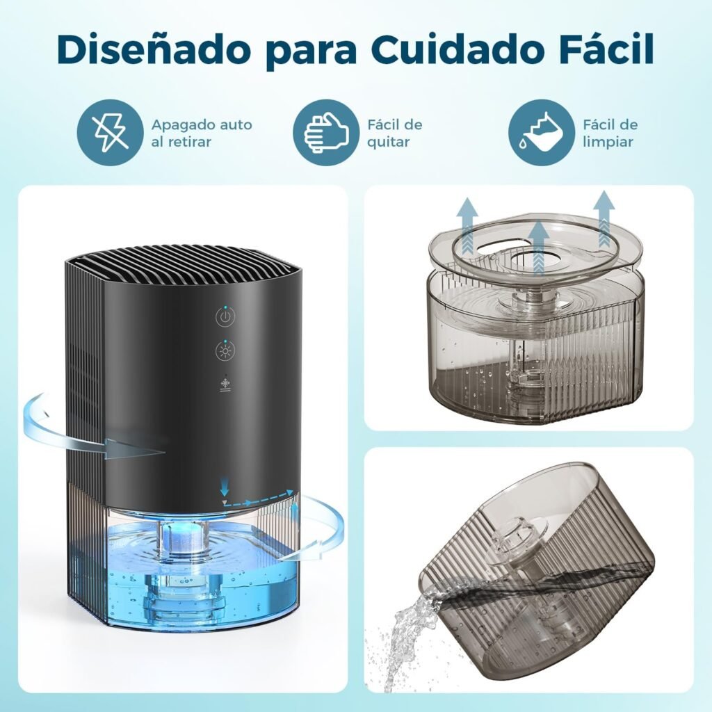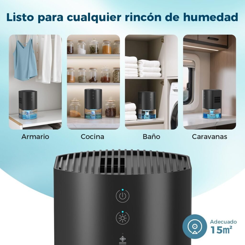 Este deshumidificador es perfecto para espacios donde la humedad puede ser un problema, como baños sin ventilación adecuada, dormitorios con alta humedad o áreas propensas a moho. Su funcionamiento silencioso y diseño moderno lo hacen adecuado para cualquier habitación.