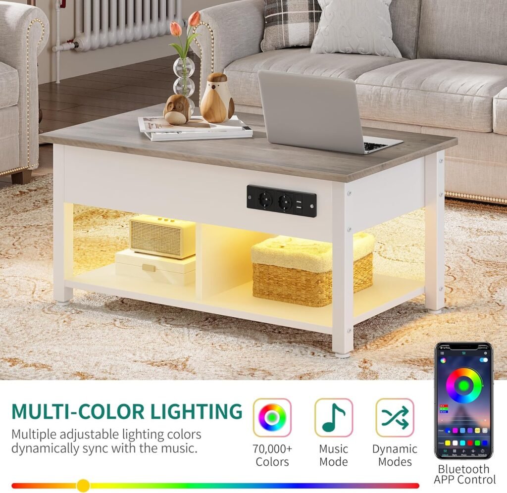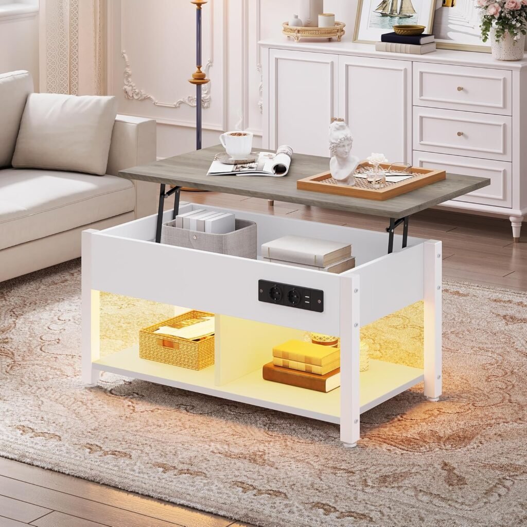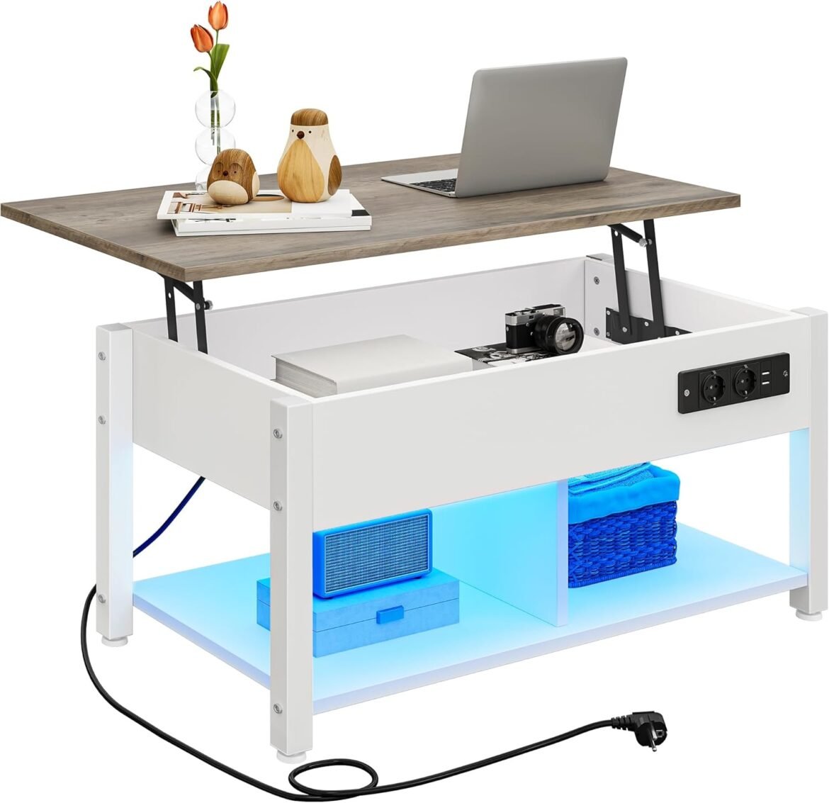 La Mesa de Centro Elevable YITAHOME con LED combina funcionalidad y estilo: tapa ajustable como escritorio, iluminación ambiental, y almacenamiento oculto. Ideal para renovar tu salón con versatilidad y elegancia.