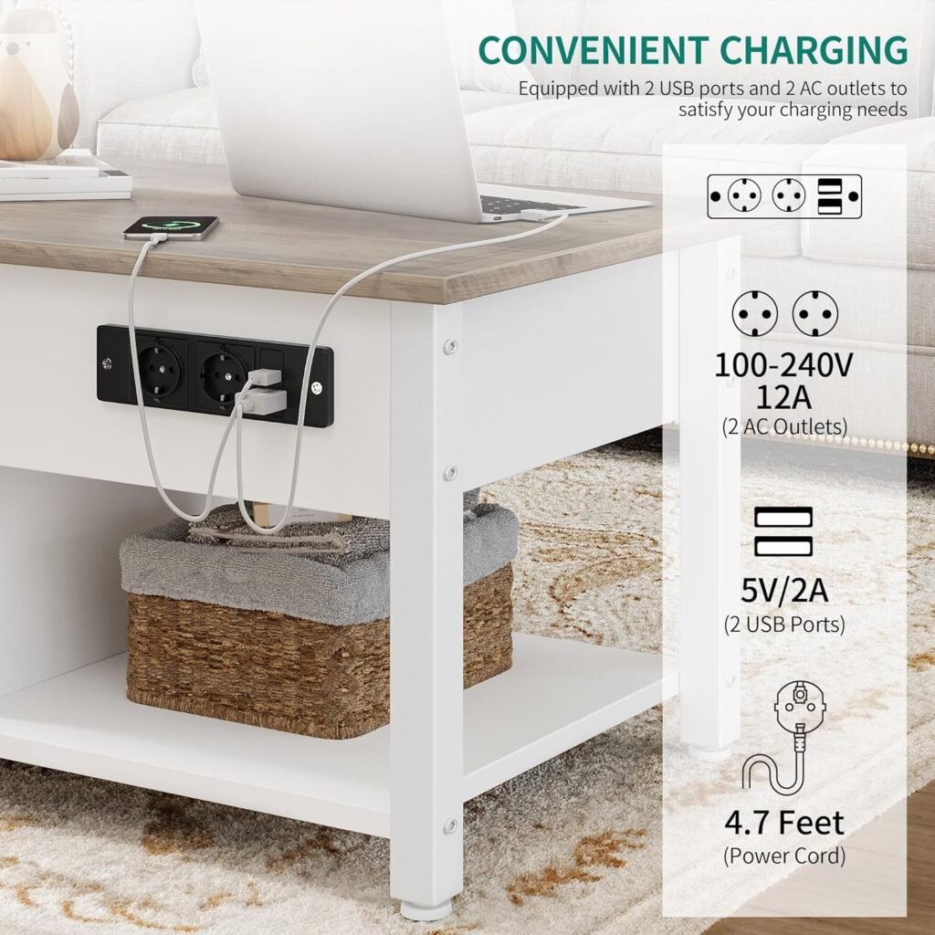 Esta mesa de centro elevable de YITAHOME se distingue por sus múltiples funcionalidades que se adaptan a las necesidades del hogar contemporáneo: