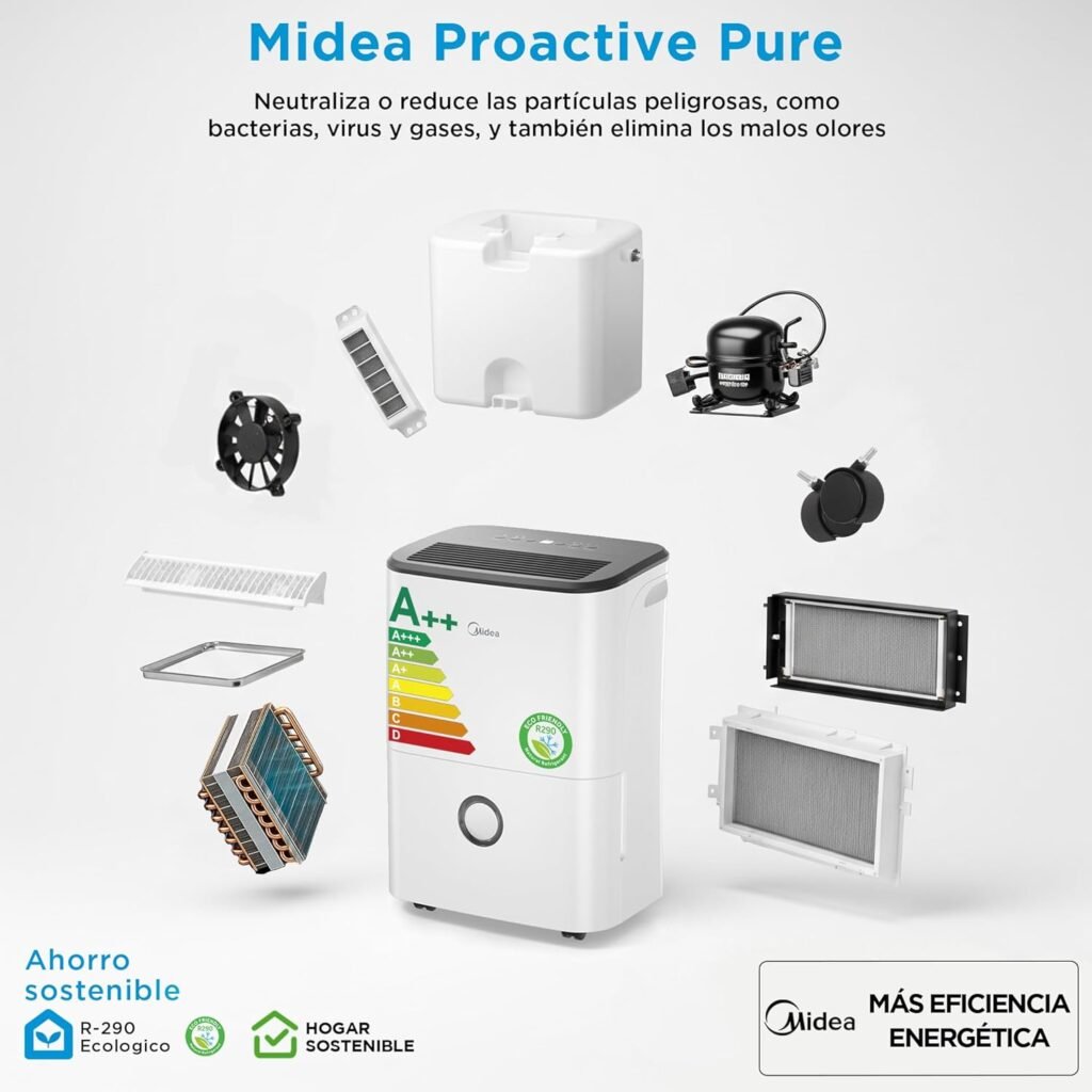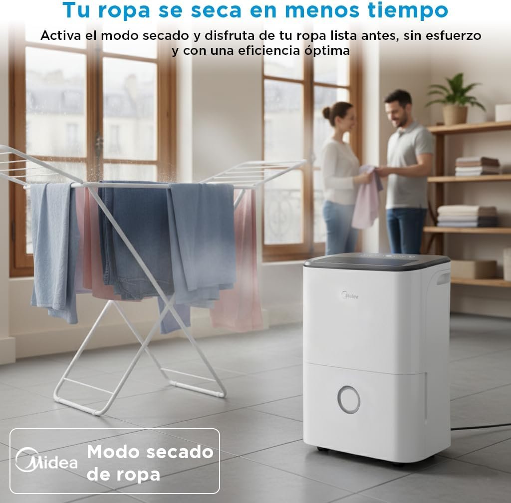 MideaDeshumidificador doméstico con 20 L/día, Wi-Fi y funciones inteligentesPersonas que quieren control efectivo de la humedad en espacios medianos🛒 Ver en Amazon