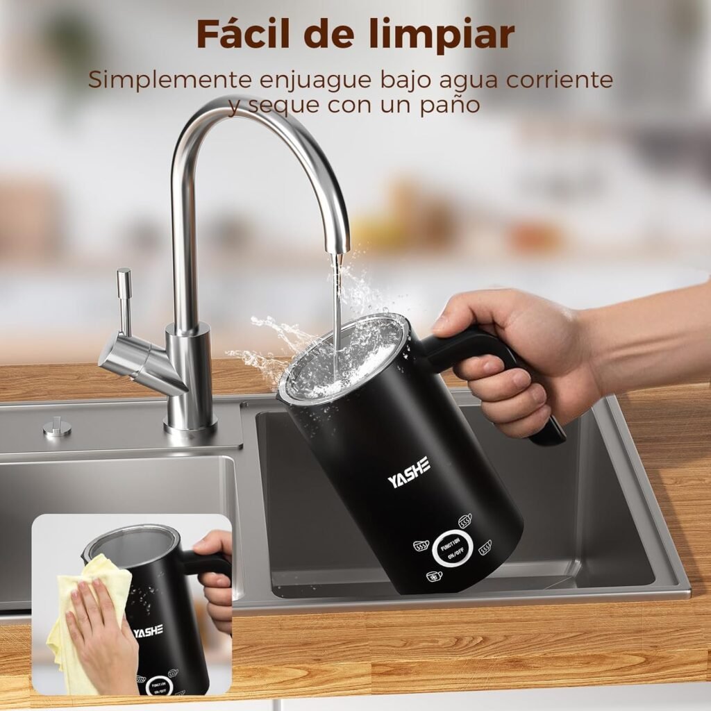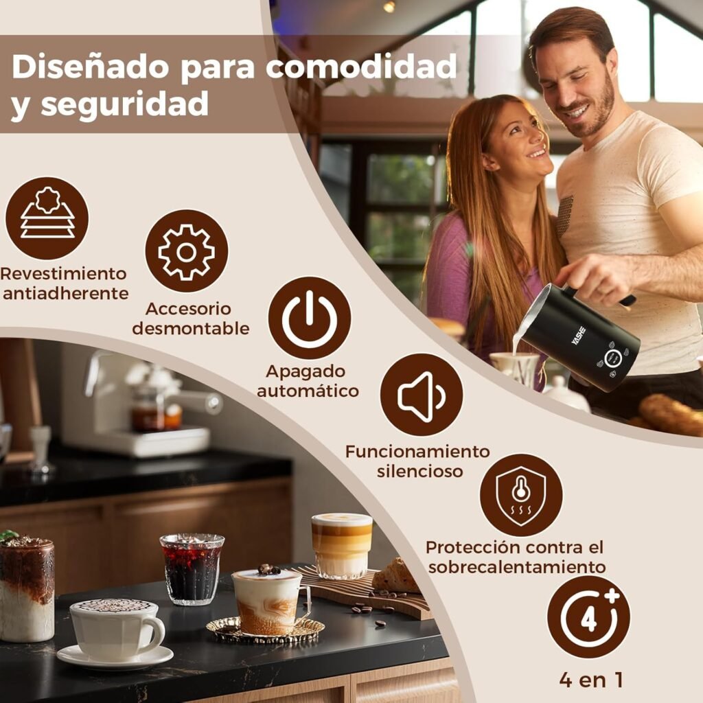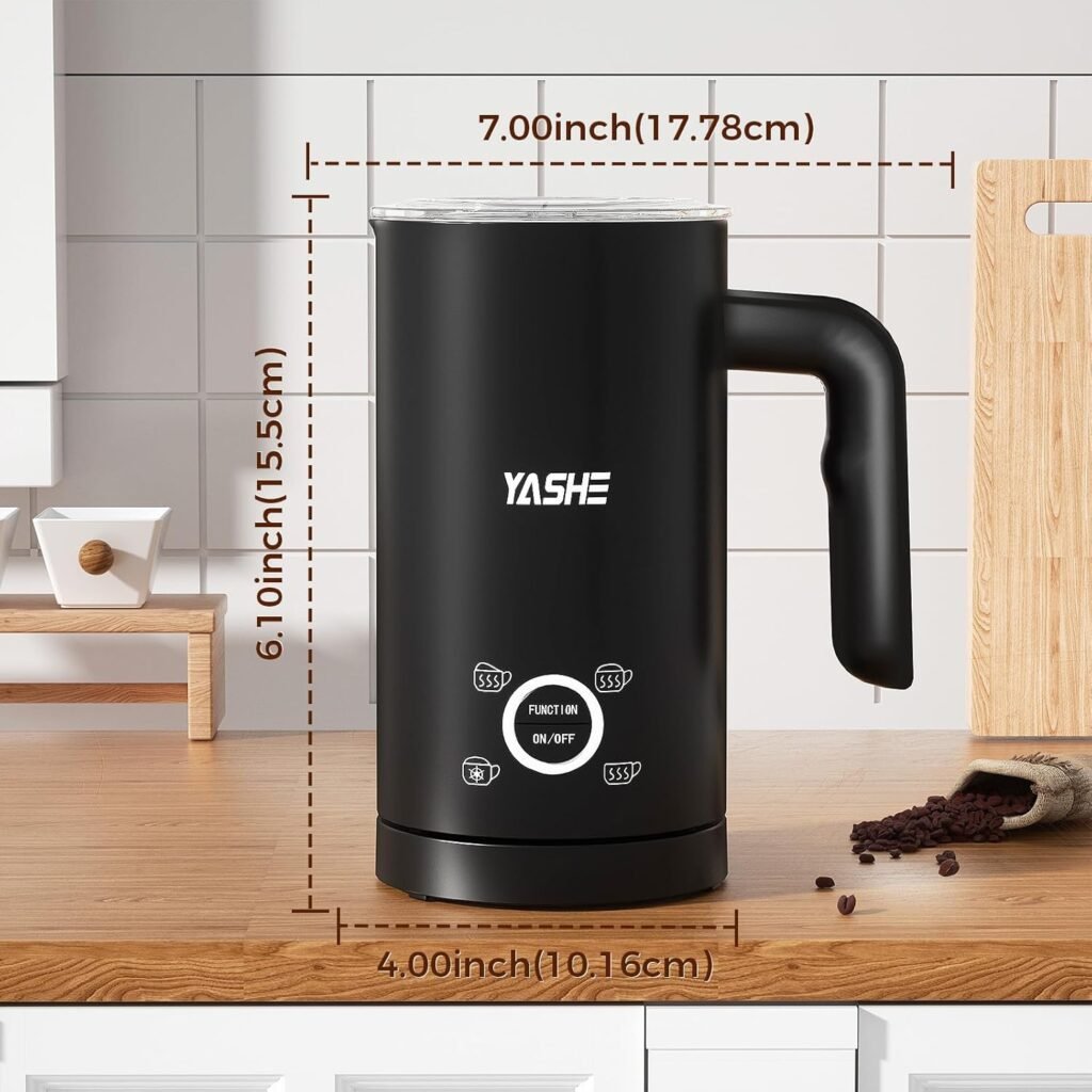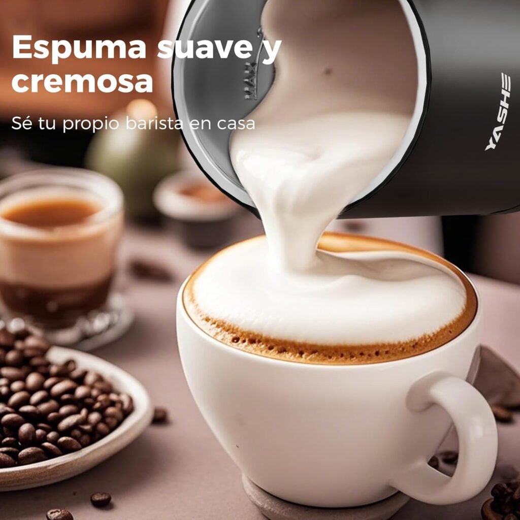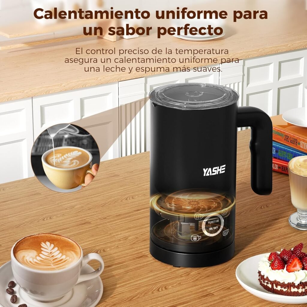 YASHE Espumador 4 en 1 (500 W, 300 ml): espuma caliente/fría, calienta leche, antiadherente y silencioso. Elegante, fácil limpieza y diseño premium para tu hogar.